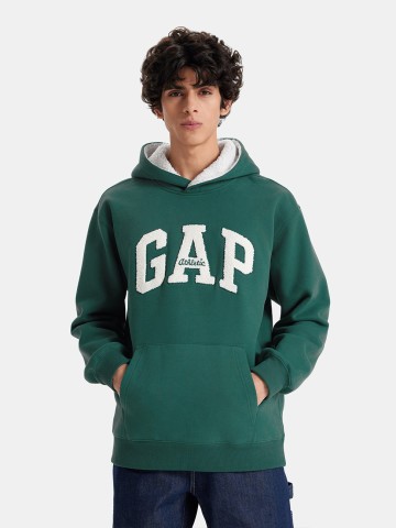 男裝 Logo刺繡刷毛帽T-綠色