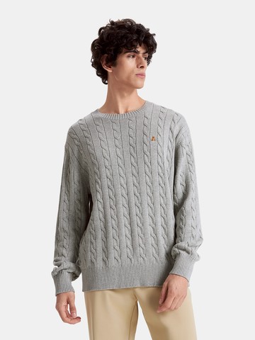 男裝 純棉小熊刺繡圓領毛衣-淺灰色