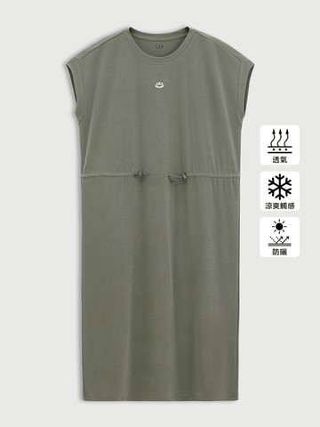 女裝 Logo刺繡防曬圓領無袖洋裝-軍綠色