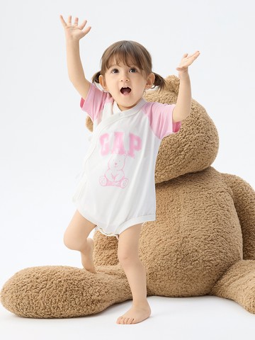 嬰兒裝 Logo純棉印花圓領短袖包屁衣-粉色