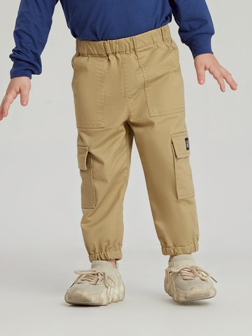 男幼童裝 Logo鬆緊束口工裝褲-卡其色