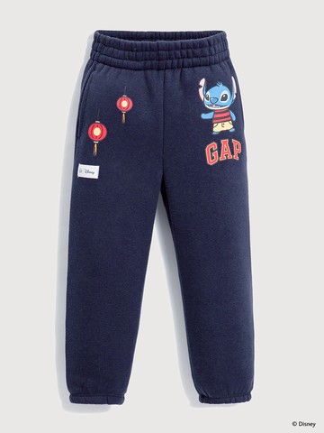 男幼童裝 Gap x 史迪奇聯名 Logo印花刷毛束口鬆緊棉褲-海軍藍