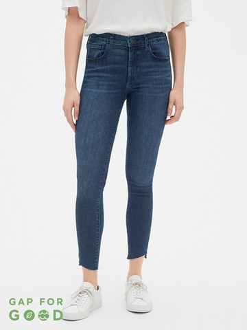 女裝 中腰毛邊高彈力緊身牛仔褲-藏青色