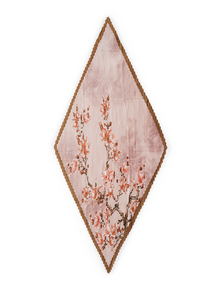 藝術水墨花卉壓褶絲巾