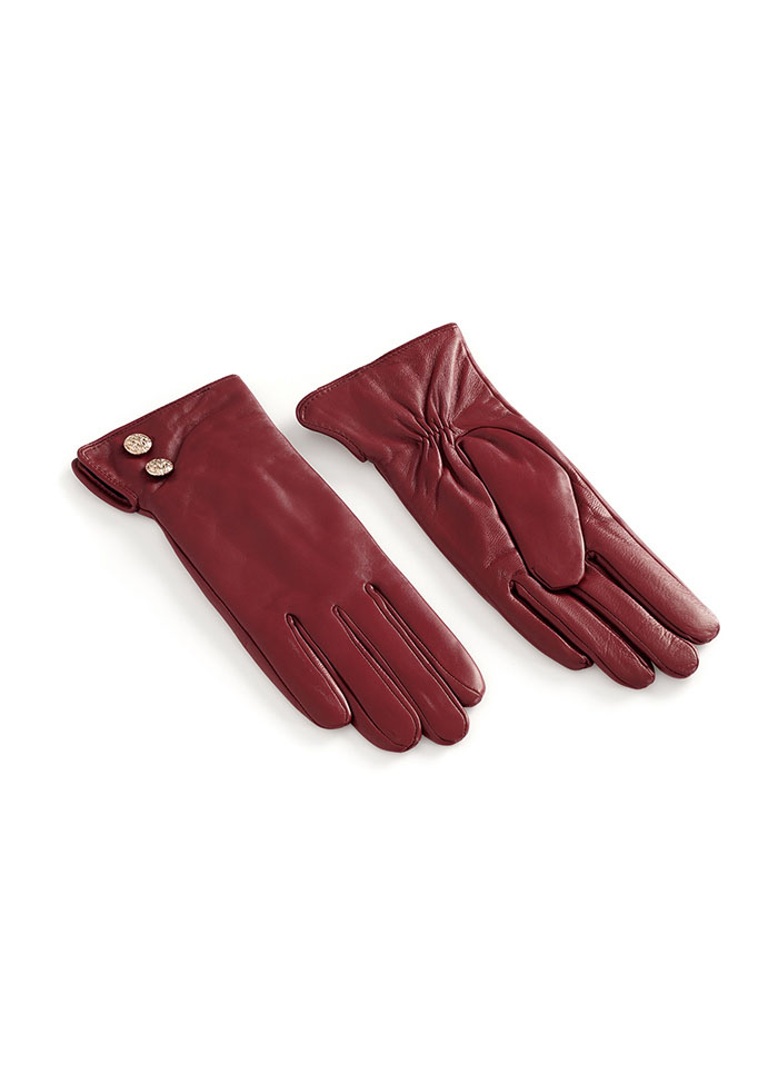 Chloe 品牌字母LOGO圖騰刺繡蝴蝶結造型羊毛手套(暗酒紅色)
