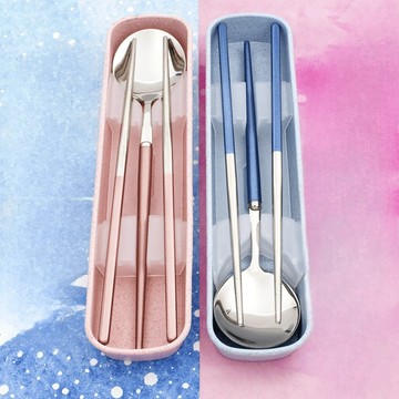 點我下載超值感 送收納袋歐式304不銹鋼 餐具5件組 筷子+湯匙+叉子+收納盒+收納袋 餐具組