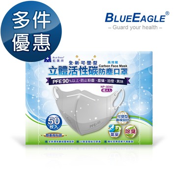 藍鷹牌全新可塑型 成人立體活性碳口罩 50片/入