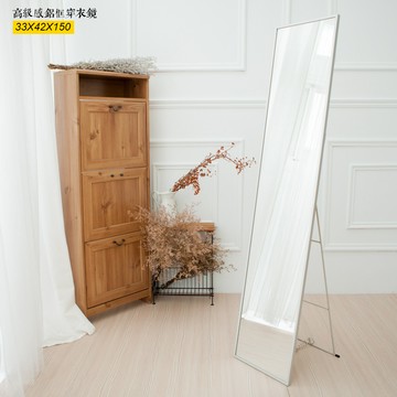 點我下載kihome高級感鋁框穿衣鏡木質背板33x42x150免運/掛鏡/立鏡/自拍鏡/桌鏡/壁鏡