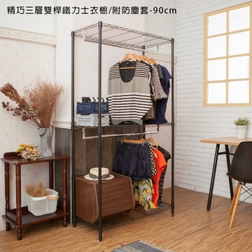 點我下載kihome精巧三層雙桿鐵力士衣櫥(90cm)限時免運/衣櫃/收納櫃/衣架/鐵力士層架