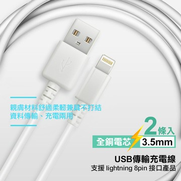 點我下載for iphone lightning 8 pin usb副廠傳輸充電線 2 條-可用 ip8