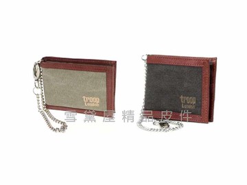 點我下載休閒短夾troop英國經典帆布休閒二折短夾 附防竊盜鍊條設計防水可刷洗保養100%純棉+皮