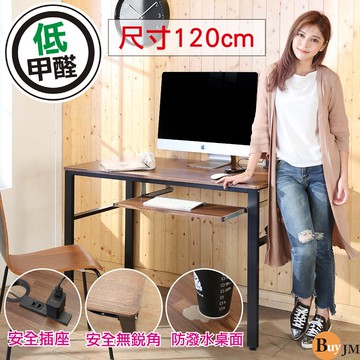 點我下載buyjm工業風低甲醛防潑水120公分單鍵盤架穩重型工作桌/附插座/電腦桌
