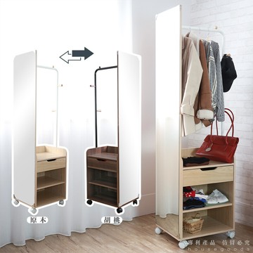 【匠俱】臥室可移動旋轉試衣鏡 穿衣鏡 掛衣架 一體全身鏡 落地鏡 收納櫃 傢用鏡子 衣架 衣櫃 收納櫃