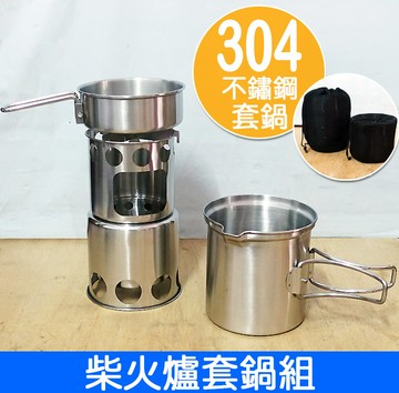 點我下載304不鏽鋼柴火爐套鍋組(贈收納袋) 防風 取暖 野炊