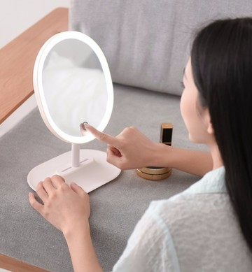 點我下載鏡子 化妝鏡 led化妝鏡 帶燈鏡子 網易嚴選 指觸led子母化妝鏡帶燈智能柔光充電式抖音觸屏梳妝鏡