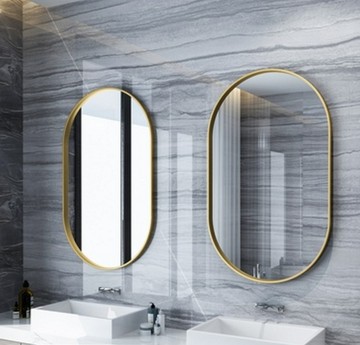 點我下載鏡子50*100cm 化妝鏡 橢圓鏡 北歐衛生間鏡子壁掛浴室鏡梳妝洗手間鏡臥室鐵藝橢圓長條上下半圓