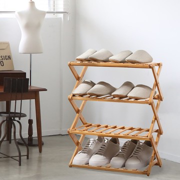 點我下載不佔空間免組裝簡易折疊收納鄉村風經典款50cm竹製四層竹製露營置物架花架鞋架/原木色