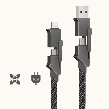 點我下載四合一pd充電線 超快速充電 鋅合金 數據線 type-c/8pin 一線四頭 (支援60w)
