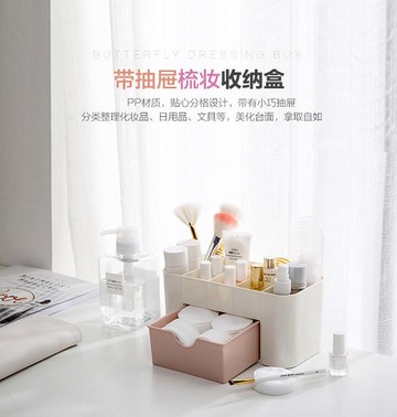 點我下載帶抽屜多功能首飾收納盒帶抽屜收納塑料桌面化妝品收納盒桌面塑料收納盒家用a