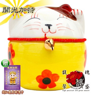 點我下載馥瑰馨盛金運茶花招財貓撲滿擺件含座墊-陶瓷手工彩繪祝賀開店送禮(含開光-momo獨家買一送五)