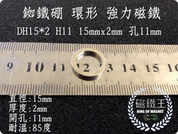 點我下載磁鐵王釹鐵硼 強磁 環形 磁鐵 磁石 吸鐵 強力磁鐵 dh15x2 h11 直徑15高2孔11m