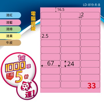點我下載longder龍德電腦標籤紙 33格 ld-819-c-b 五色可選 1000張 影印 雷射