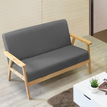 點我下載!新生活家具! 彗星灰色 二人位沙發 雙人沙發 木製沙發 布沙發 亞麻布 松木扶手 休閒椅 北歐