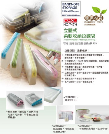 點我下載cox三燕 no.747h 票據型 環保 立體式柔軟收納拉鍊袋 可捲 防潮 防汙損 1入3個