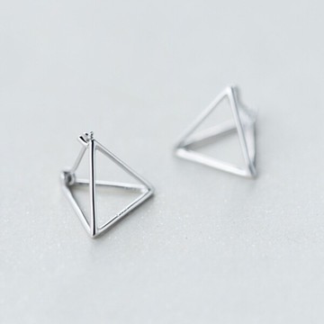點我下載925純銀 立體空心三角形 耳環耳圈扣-銀 防抗過敏