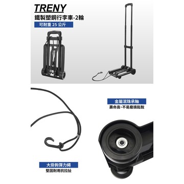 點我下載treny直營treny鐵製塑鋼行李車-2輪 購物車 附大掛鉤彈力繩 耐重25公斤 收納 金屬滾