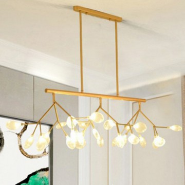 點我下載燈 燈具 吊燈 餐廳燈 三色光吊燈 餐廳吊燈 現代簡約 輕奢三頭長方形服裝店吧臺螢火蟲燈北歐客廳吊燈