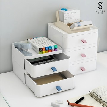 點我下載style格調abs優質雙層收納盒-可自由堆疊/桌面收納盒/小物收納盒-3色可選