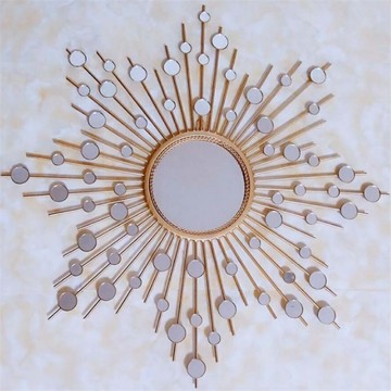點我下載60cm 鏡子 裝飾鏡 歐式鏡 背景鏡 歐式客廳背景墻面裝飾鏡鐵藝餐廳壁掛鏡床頭玄關浴室圓形太陽鏡子