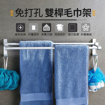 點我下載joeki免打孔毛巾架 雙桿毛巾架 三合一放衣架 浴室置物 曬衣架y0108