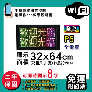 免運 客製化led字幕機 64x96cm(wifi/usb雙傳輸) 全彩p5買大送小 跑馬燈
