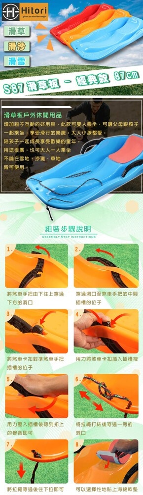 點我下載hitori s87 滑草板-經典款87cm(滑草/滑沙/滑雪) 採用煞車手把安全設計及拉繩