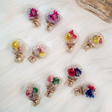 復古雙面氣泡水晶水鑽花朵氣質耳環 g1904