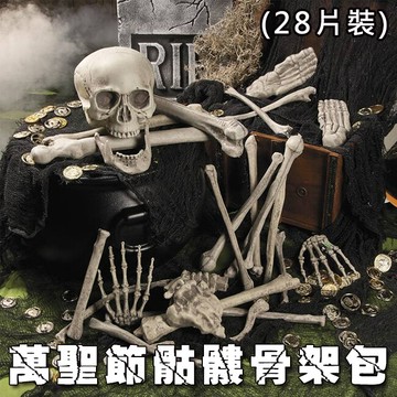 點我下載萬聖節 骷髏骨架包 (28片) 骷髏頭 骨頭 散骨 白骨 人體模型 擺件 密室逃脫 鬼屋布置