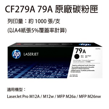 【2入組】HP CF279A/279/79A 黑色原廠碳粉匣 適用HP M12a/M12w/M26a/M26nw