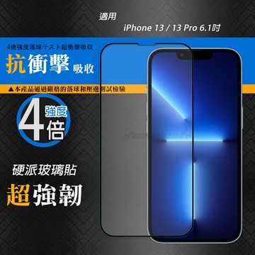 點我下載cb硬派強化4倍抗衝擊 iphone 13/13 pro 6.1吋 鋼化疏水疏油玻璃保護貼-黑