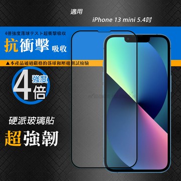 點我下載cb硬派強化4倍抗衝擊 iphone 13 mini 5.4吋 鋼化疏水疏油玻璃保護貼(黑)