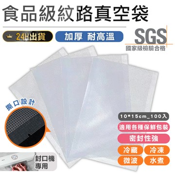 點我下載10x15食品級加厚紋路真空袋100入真空封口袋 食物真空袋 真空包裝袋 封口機真空袋 密封袋