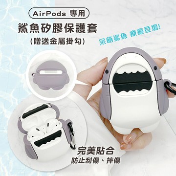 點我下載鯊魚 airpods 1/2代專用 藍牙耳機 造型矽膠保護套(附掛勾)