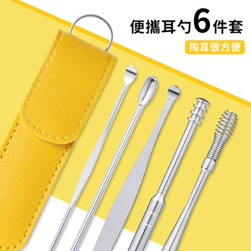 荷生活日式全方位精製不鏽鋼螺旋掏耳棒耳勺六件套組