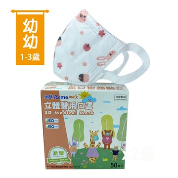 點我下載台灣製 "永猷"3d立體醫用口罩 幼幼款1-3歲(未滅菌)50入/盒 ~