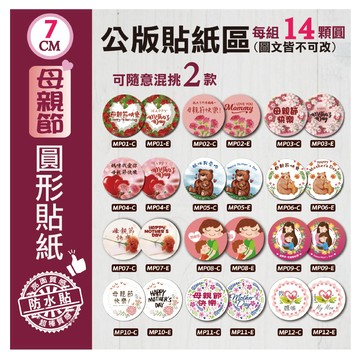 點我下載幸福禮物母親節少量圓形防水貼紙7cm(公版任選2種)/烘焙包裝創意禮品/另有客製