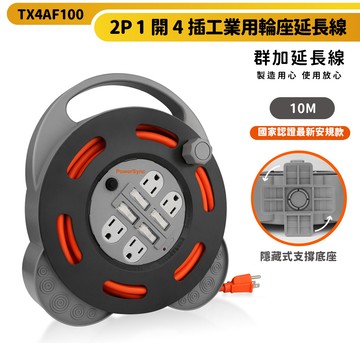 免運【包爾星克】TX44F100工業用2孔4開4插10m抗突波 輪座 延長線(過載斷電 電源線組)