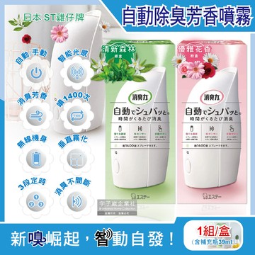 點我下載日本st雞仔牌-室內消臭力智能光感應3段定時無線自動除臭芳香噴霧機1入/盒(含芳香劑補充瓶39ml)