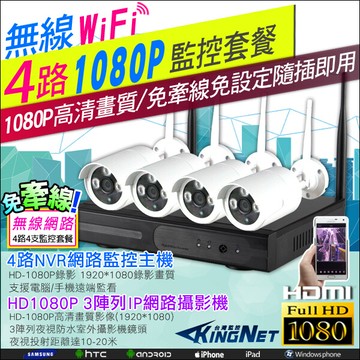 點我下載kingnet監視器攝影機 4路4支 wifi 1080p 200萬鏡頭 免拉線 diy施工