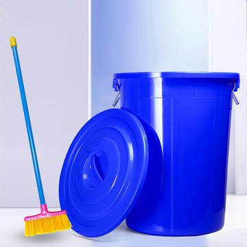點我下載台灣製萬用桶儲水桶垃圾桶附蓋(顏色隨機) 46l (單入桶+掃把1支)